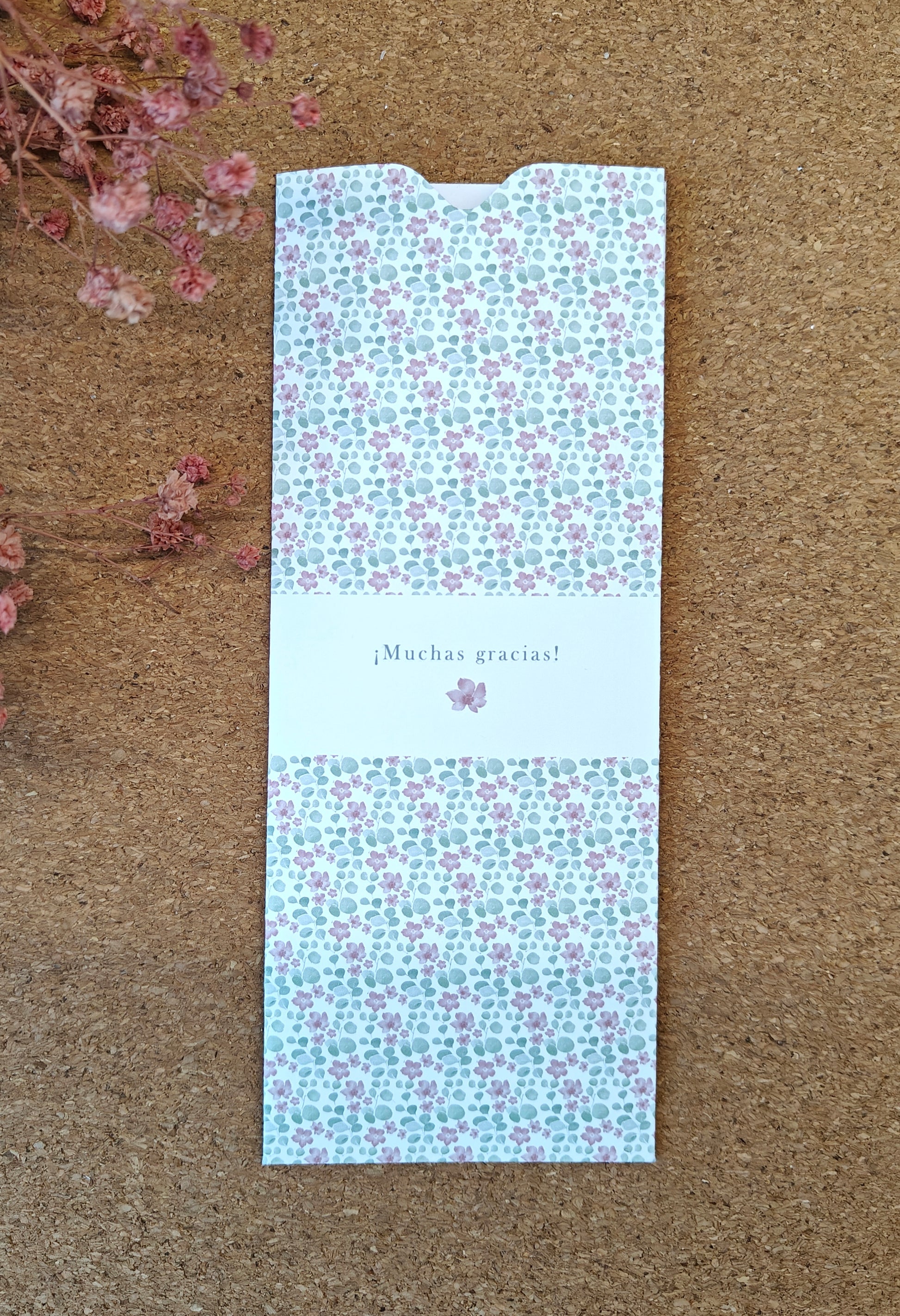 Sobre: papel 260g mate liso con el diseño a juego.